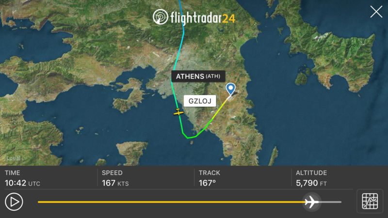 The flight to Athens was 1:40 including the TPL 1W SID off the northerly runway.