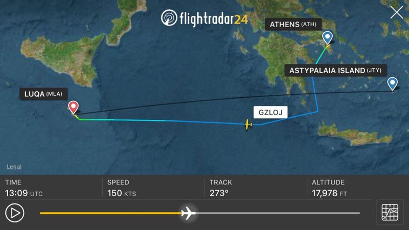 When we left Astypalea there was a lot of bad weather over Italy and the Adriatic. Plan A was to fly to Athens and onto Portoroz LJPZ in Slovenia and on to Annemasse, but we would probably have got stuck in Portoroz or had to divert back to somewhere on the Croatian coast. So Plan B evolved which was Athens LGAV - Malta LMML - Annemasse LFLI.